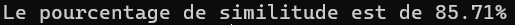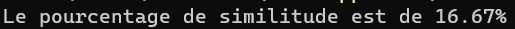 Write-Output "Le pourcentage de similitude est de $similarityPercentage%" Résultat